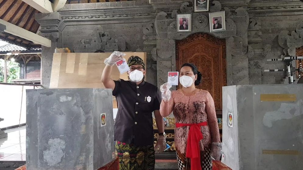 MANGUPURA – Hasil perhitungan suara sementara Pemilihan Bupati-Wakil Bupati Badung menempatkan pasangan calon semata wayang, I Nyoman Giri Prasta-I Ketut Suiasa (Giriasa) pada posisi di atas awan. Suara sementara pasangan tersebut menggondol 94,69 persen suara sementara, sedangkan Kolom Kosong (Koko) hanya memperoleh 5,31 persen suara sementara.
