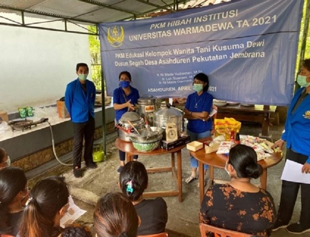 Didampingi anggota tim Ir. Luh Suariani, M.Si dan Ir. Ni Made Darmadi, M.Si, menegaskan tantangan lain penyediaan panganan cepat saji dan bernutrisi di anggota kelompok tani yaitu rendahnya pengetahuan pengolahan yang baik dan benar. Pendampingan secara kontinyu dan berlanjut diperlukan untuk meningkatkan pengetahuan dan keterampilan anggota kelompok tani yang sebagian besar bekerja sebagai ibu rumah tangga.