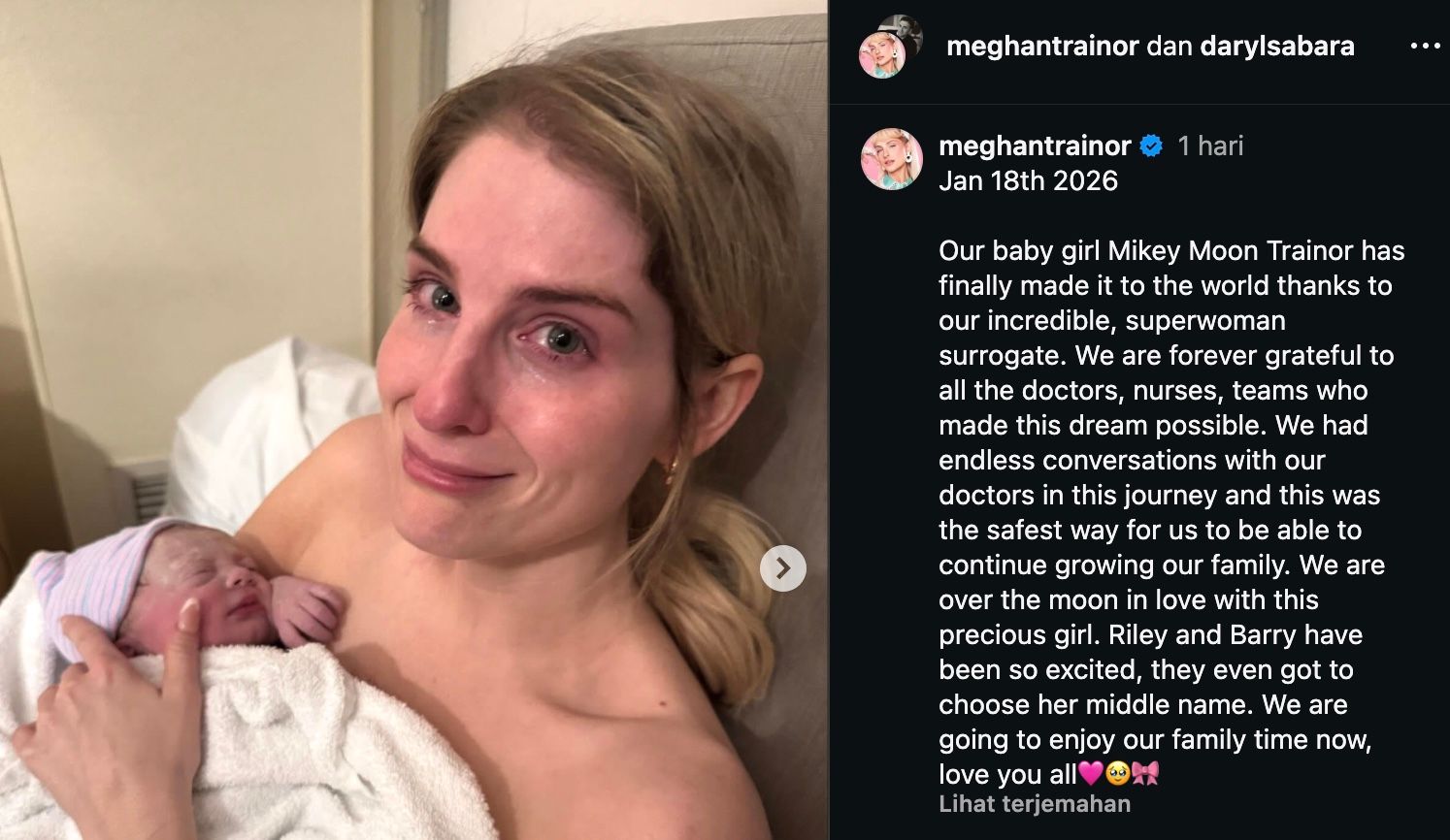JAKARTA — Baru-baru ini warganet di media sosial ramai membicarakan soal Meghan Trainor yang diketahui menyambut kelahiran putrinya, Mikey Moon melalui ibu pengganti (surrogate) pada Minggu, 18 Januari 2026 lalu.