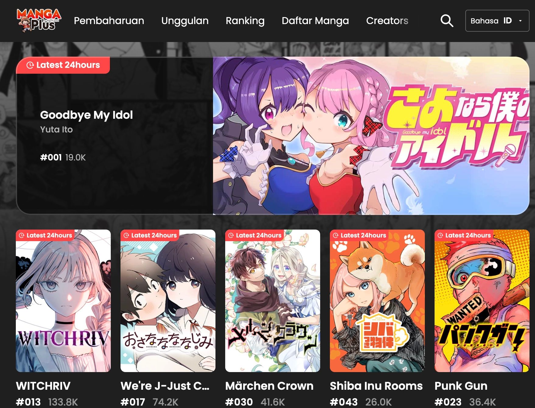MANGA Plus adalah situs baca manga resmi yang berada di bawah naungan Shonen Jump. Layanan ini beroperasi secara berbayar, sehingga pengguna dapat menikmati pengalaman membaca yang lebih nyaman tanpa gangguan iklan pop-up yang mengganggu.