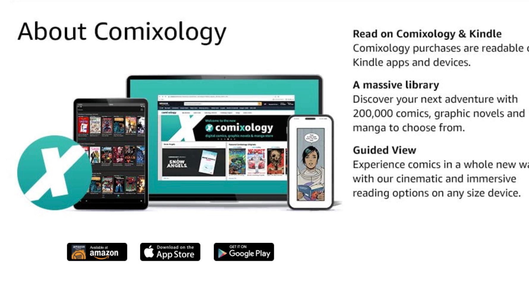 Didirikan pada 2007, ComiXology adalah layanan komik dan manga digital berbasis cloud yang dapat diakses melalui berbagai perangkat seperti iOS, Android, dan Kindle. Sejak diakuisisi oleh Amazon pada 2014, ComiXology berkembang menjadi salah satu platform baca manga digital terbesar dan paling populer di dunia.